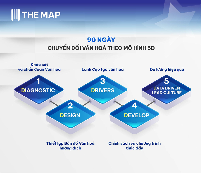 The MAP đồng hành cùng doanh nghiệp Việt trong suốt hành trình khảo sát, quan sát, đo lường, thiết kế, cài đặt và đánh giá tác động. Đưa văn hoá trở thành hệ điều hành của tổ chức, bảo đảm vừa thích ứng nhanh, vừa giữ được kỷ cương và vun đắp sức mạnh nội lực.