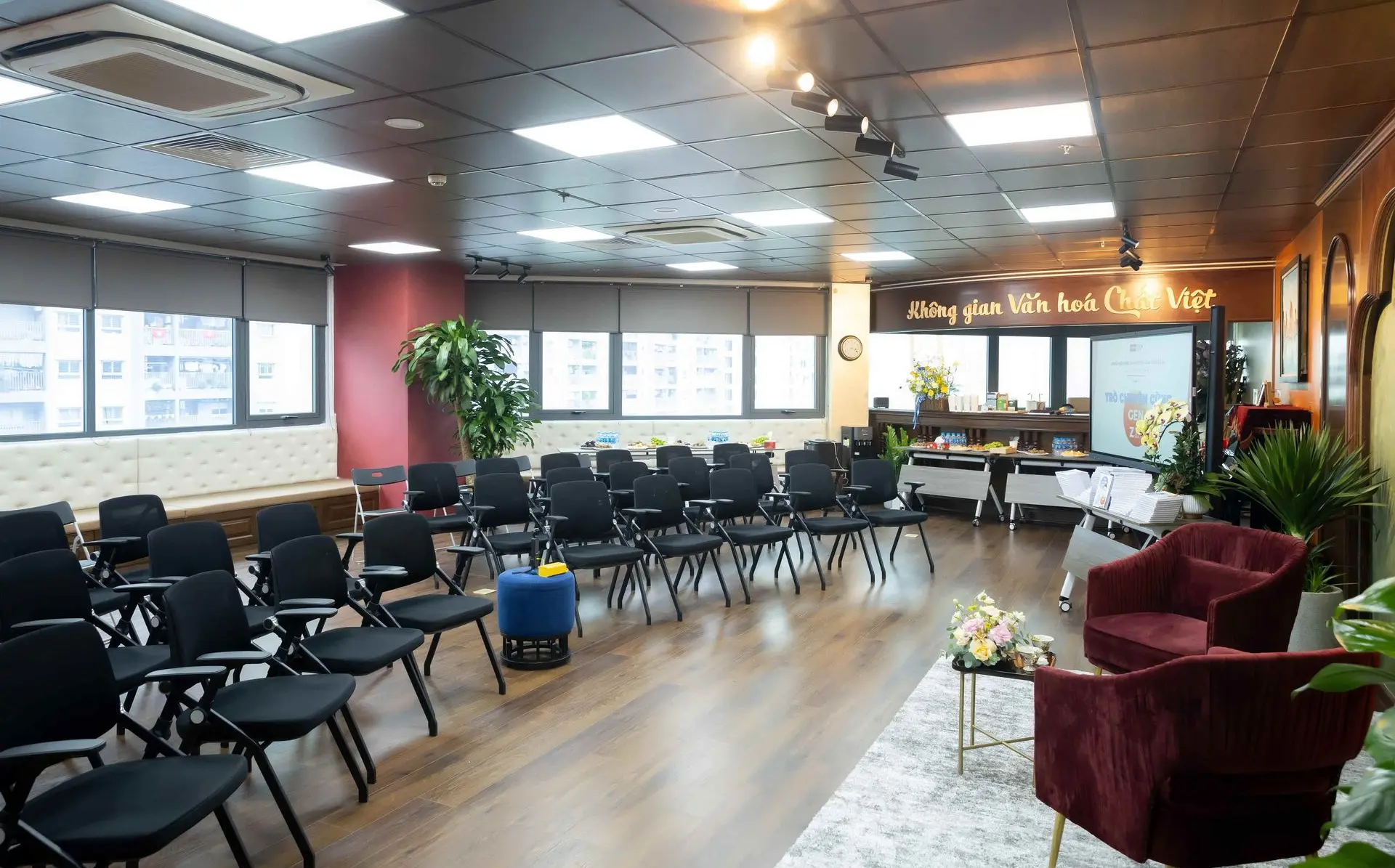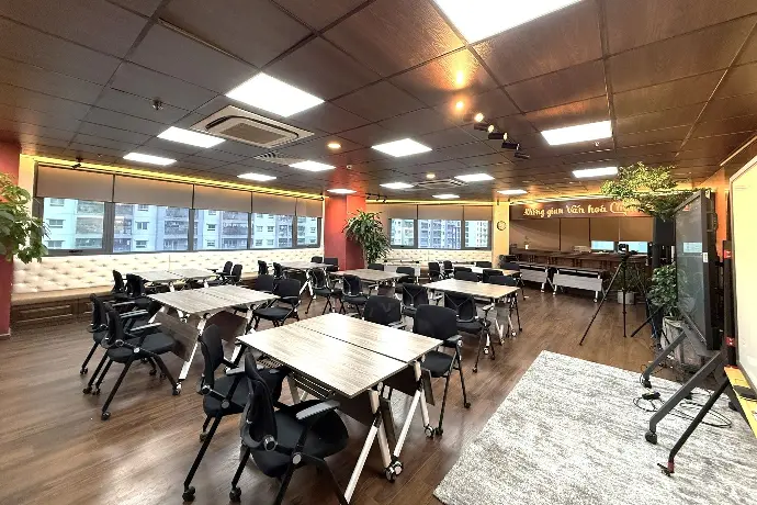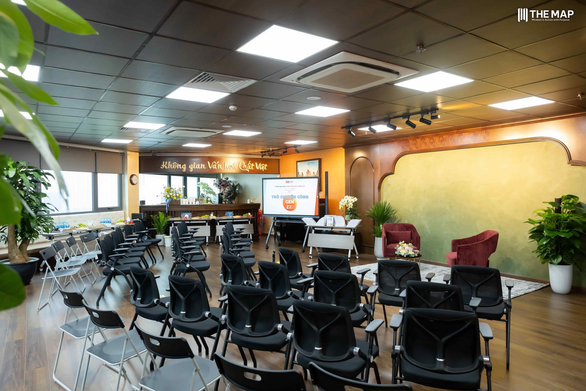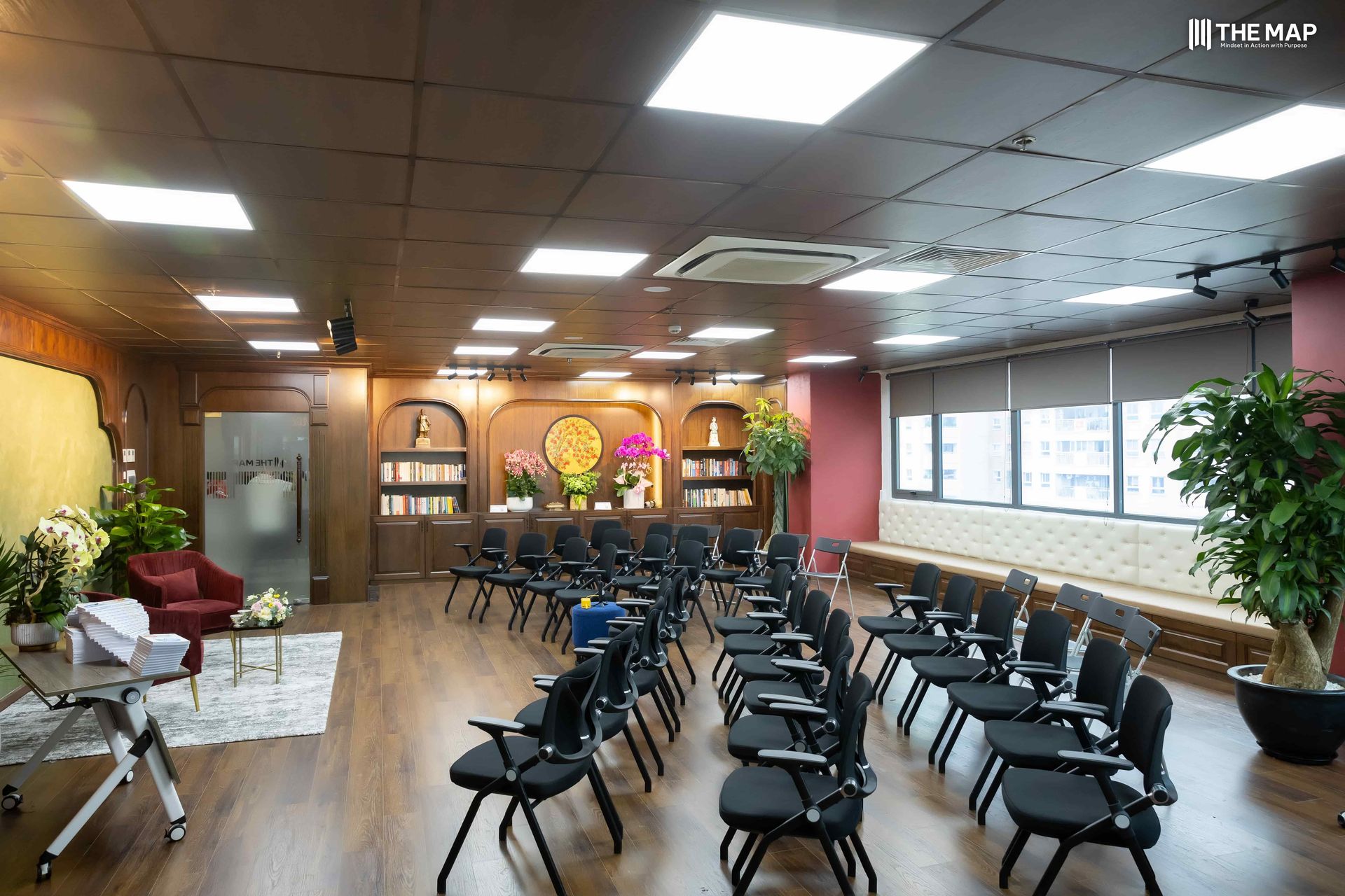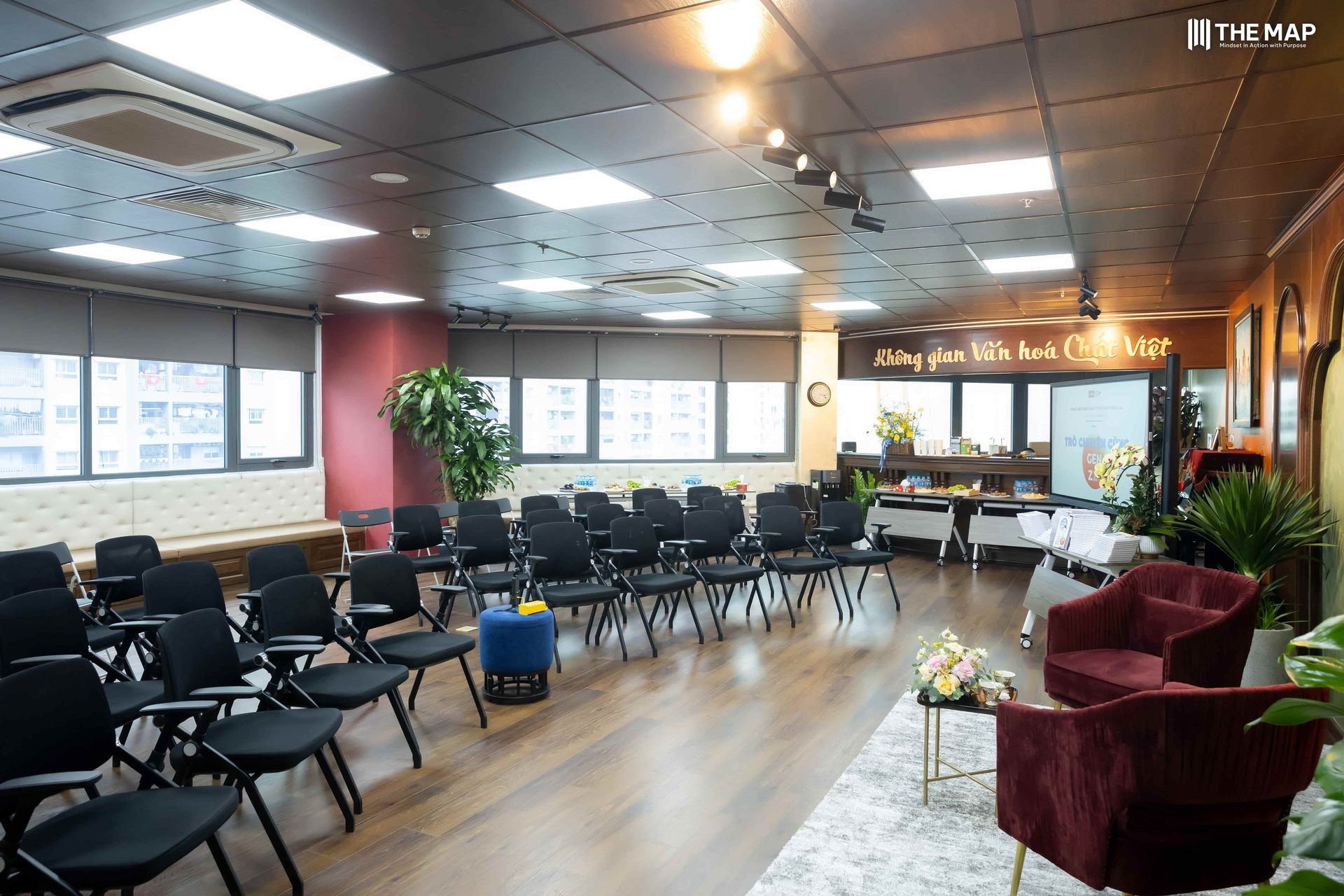The MAP mang đến giải pháp không gian 100m2, có sức chứa tối đa 50 khách, với thiết kế theo phong cách Đông Dương. Toạ lạc trên Tầng 16 Toà Viwaseen, 48 Tố Hữu, Phường Đại Mỗ, Hà Nội - ngay gần ngã tư với trục giao thông sôi động Lê Văn Lương – Khuất Duy Tiến, đây sẽ là không gian lý tưởng cho nhiều mục đích: đào tạo nội bộ, họp chiến lược, workshop, lớp học trải nghiệm, seminar chuyên đề, talkshow, tọa đàm, ra mắt sản phẩm, sinh hoạt câu lạc bộ,...